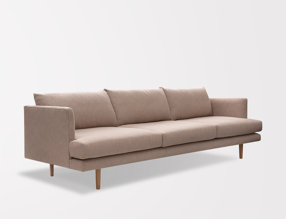 Custom Newport 3 seater sofa in Warwick Lovely Atlantic w Dark Walnut Legs